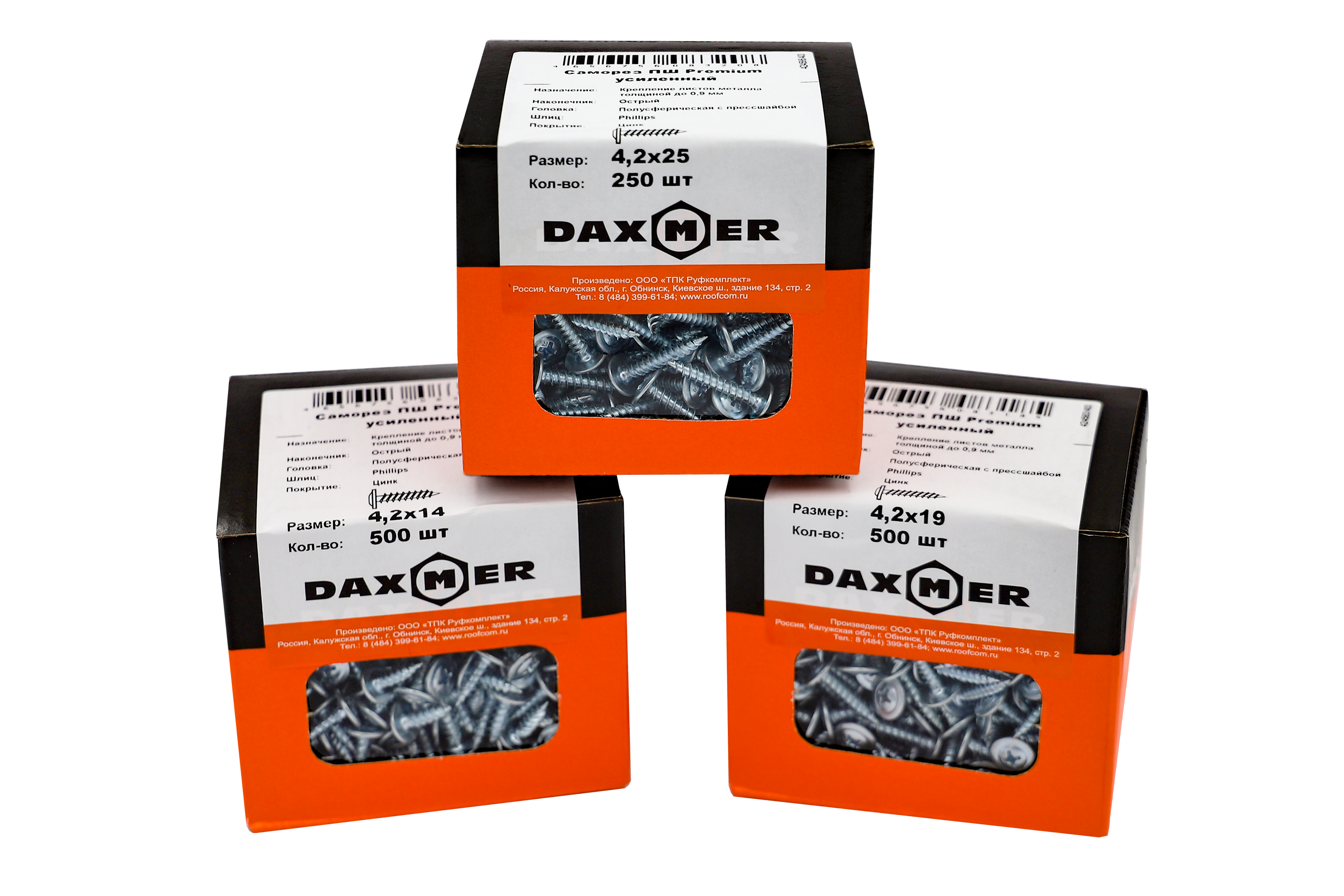 Саморез ПШ Daxmer Premium - саморез с напрессованой шайбой имеют широкую плоскую головку под крестовидную биту (PH2), которая одновременно выполняет роль шайбы. Наконечник оцинкованный - острый.