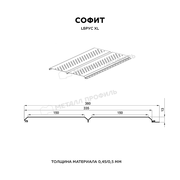 Софит МЕТАЛЛ ПРОФИЛЬ перфор. Lбрус-XL-14х335 (ПЭ-01-7024-0.45)